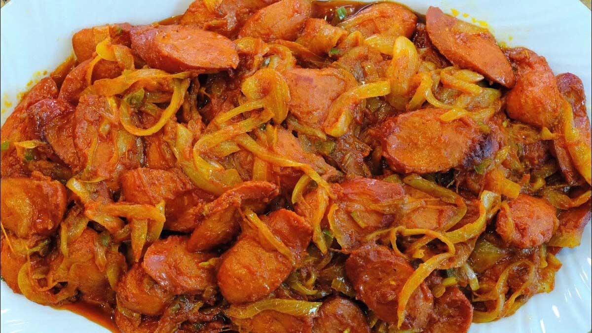 سوسیس ۶ عدد پیاز ۲ عدد بزرگ سیب زمینی (اختیاری) ۲ عدد متوسط رب گوجه فرنگی ۳ قاشق غذاخوری سس کچاپ ۱ قاشق غذاخوری فلفل قرمز و فلفل سیاه به اندازه کافی روغن و نمک به اندازه کافی